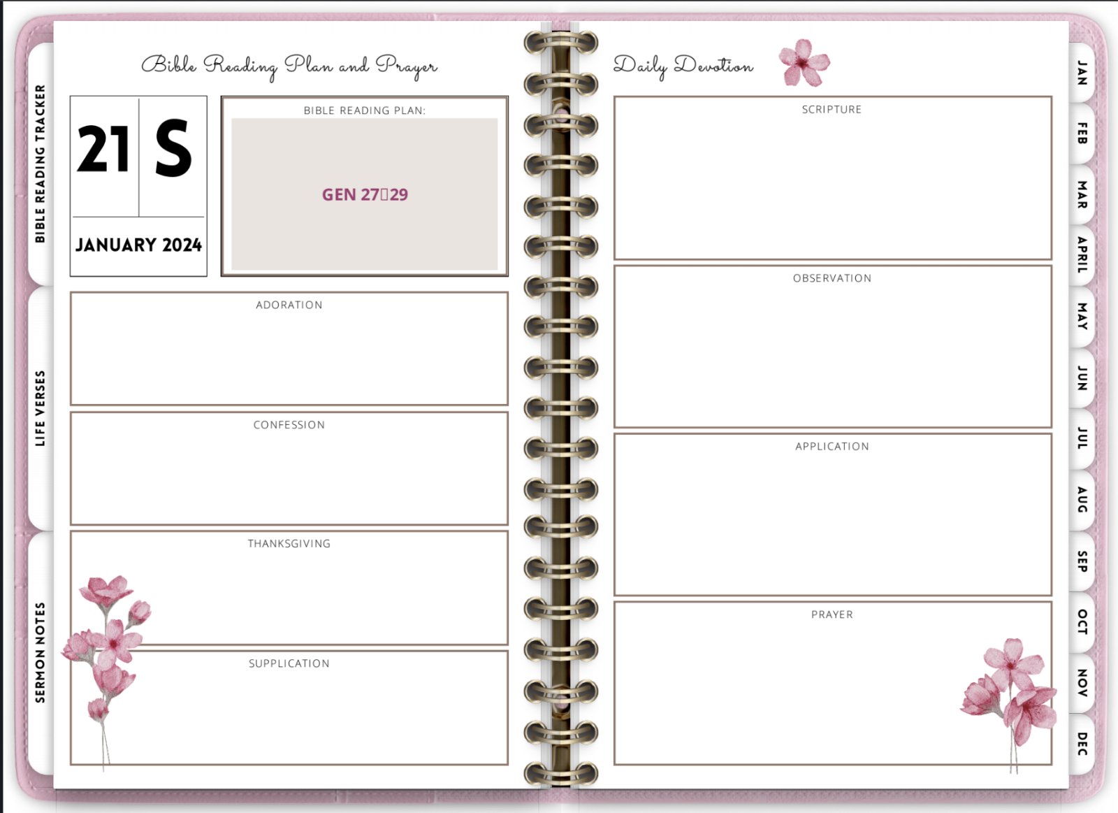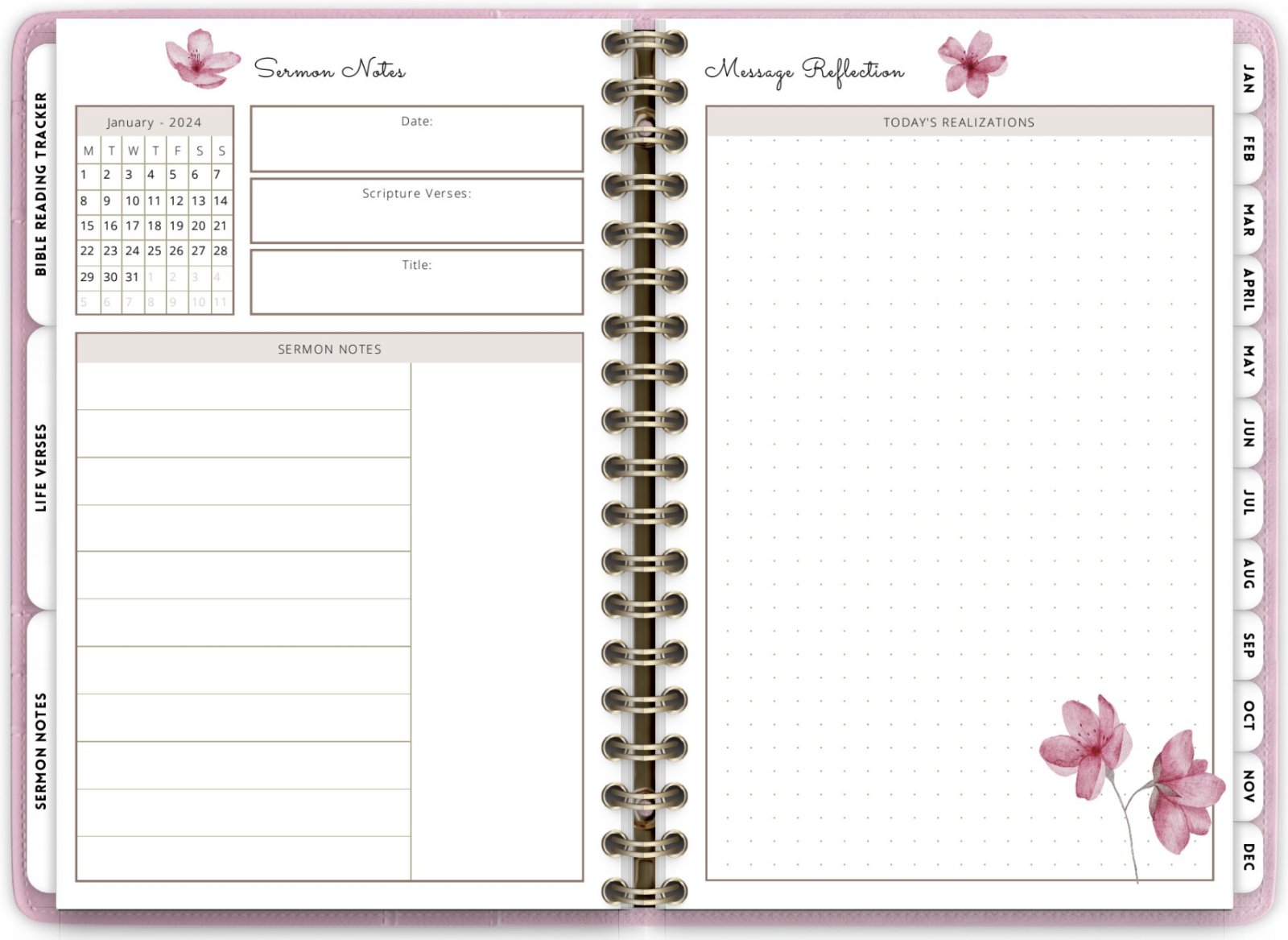 Our Interactive Bible Study Guide features an intuitive hyperlinked structure that leads you through the SOAP (Scripture, Observation, Application, Prayer) devotion method and ACTS (Adoration, Confession, Thanksgiving, Supplication) prayer model, ensuring that each day you're engaging with the scriptures in a meaningful way. The guide includes ample space for sermon notes, allowing you to reflect on and revisit the messages that resonate with you most. Whether you're at home, in a coffee shop, or at a bible study group, this guide is designed to be your constant spiritual companion, fitting seamlessly into your daily life.
